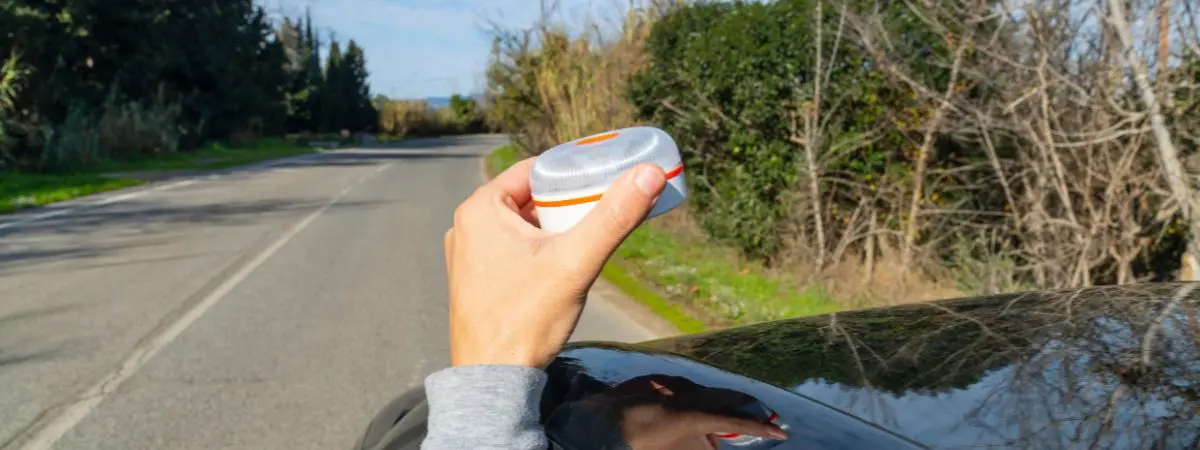 Lampa V16 powinna wylądować na najwyższym możliwym punkcie Twojego pojazdu, czyli zazwyczaj na środku dachu. Dzięki silnemu magnesowi w podstawie trzyma się pewnie nawet przy porywistym wietrze czy obfitych opadach. Jeśli Twój samochód posiada dach panoramiczny (szklany), lampę montuje się na metalowym słupku lub górnej krawędzi drzwi – magnesy w dobrych lampach V16 są na tyle mocne, że bez problemu utrzymają sygnał na każdej metalowej części karoserii.